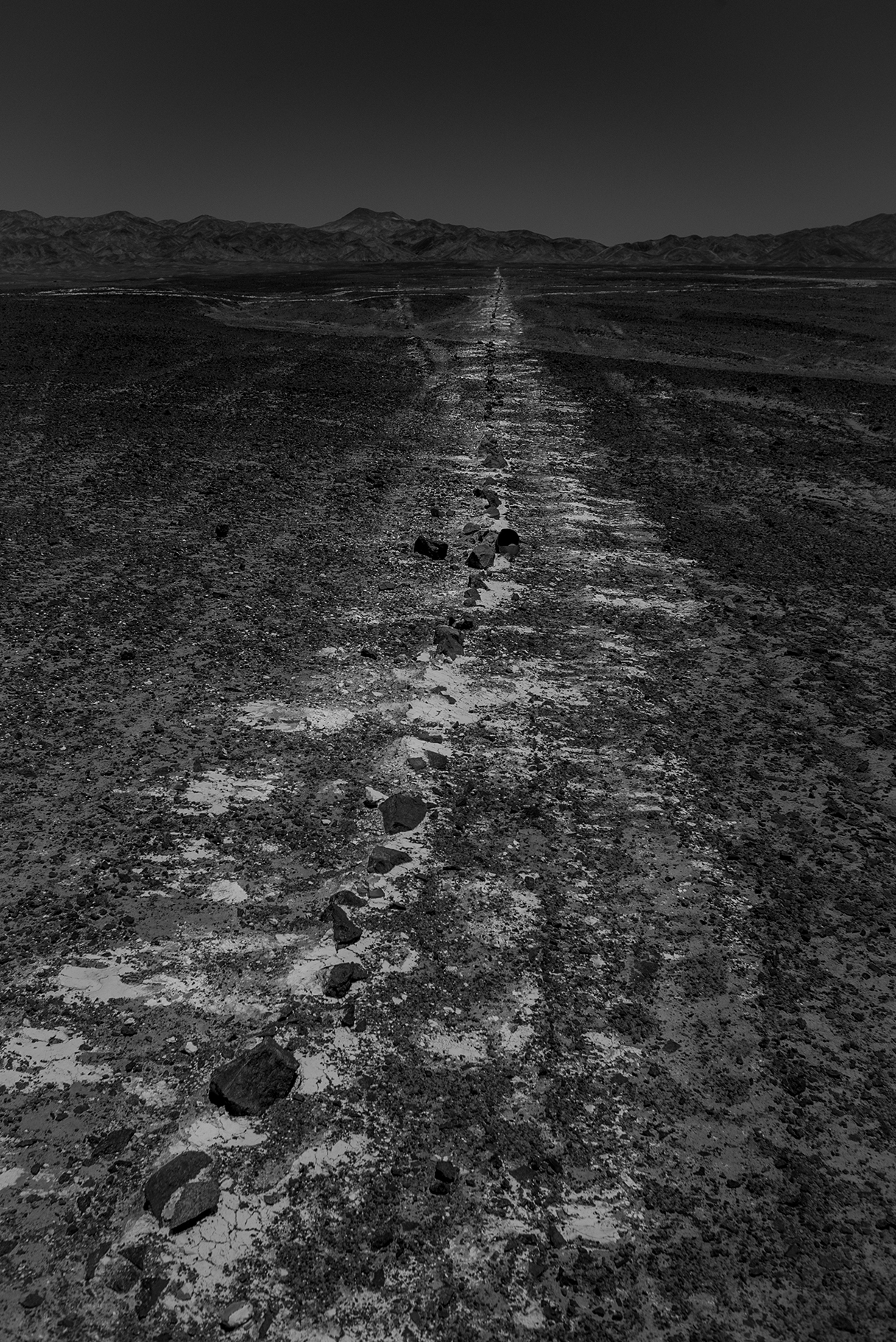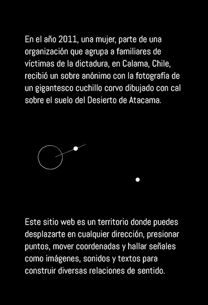 Ejercicios de aridez es un proyecto desarrollado entre 2017 y 2021 que fija su atención sobre la imagen de un inquietante cuchillo corvo de 2 kilómetros de extensión, dibujado minuciosamente con cal sobre el suelo del Desierto de Atacama.